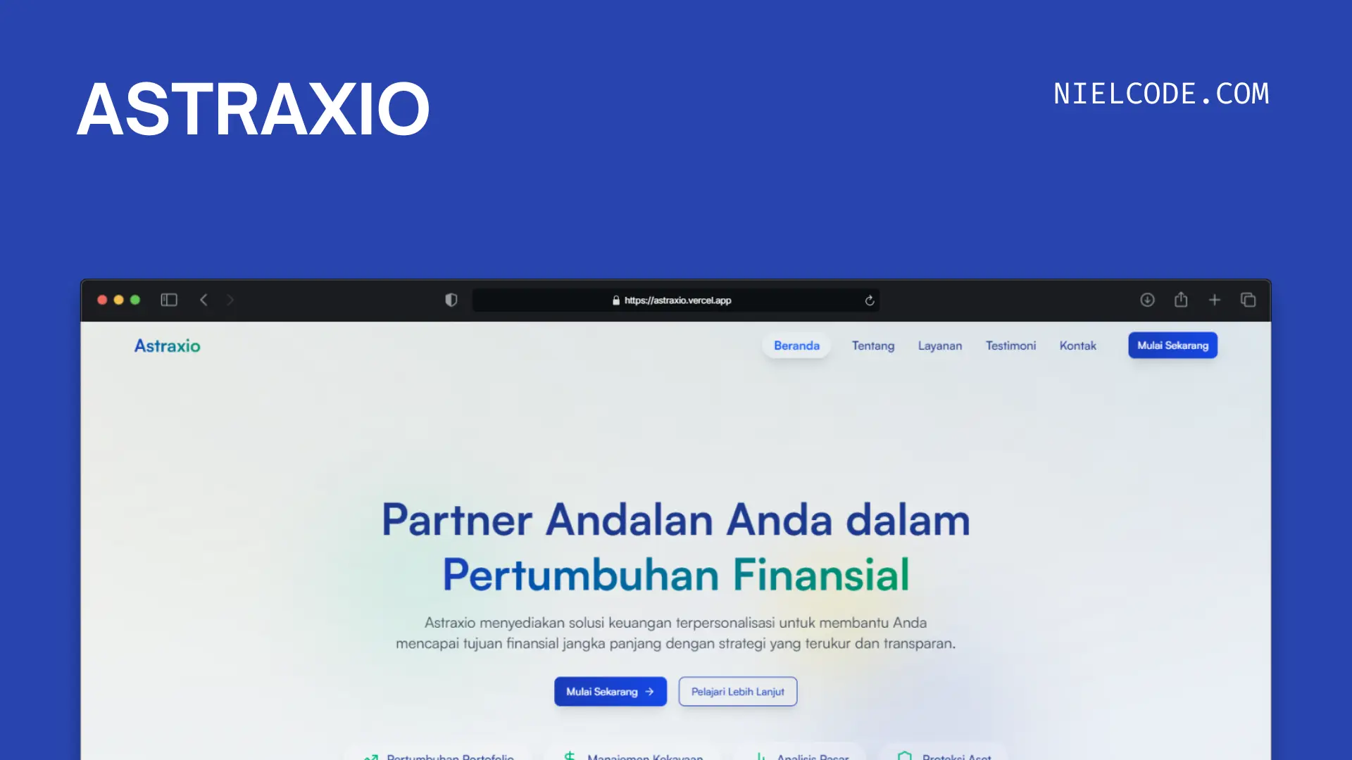 Astraxio adalah template website premium yang dirancang khusus untuk bisnis modern yang ingin memiliki kehadiran online yang profesional, menarik, dan efektif. Dengan desain yang elegan dan fitur-fitur canggih, Astraxio akan membantu bisnis Anda menonjol di dunia digital.